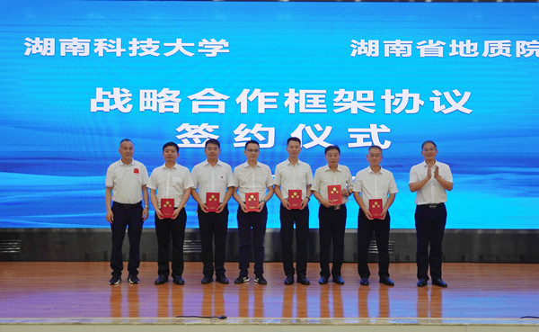 湖南科技大学相关部门负责人,省地质院相关部室及省地调所、地灾所、矿调所、物化所、地信所等负责人参加签约仪式。(转载自湖南省地质院)