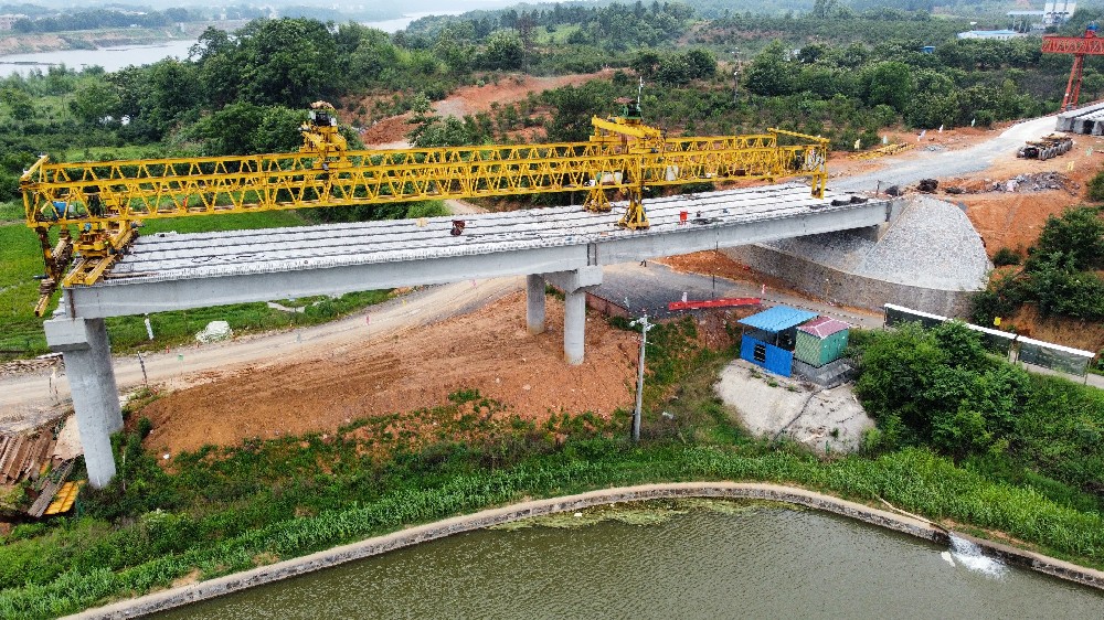 中南建设集团耒阳市大河边渡改桥工程首片预制T梁成功架设