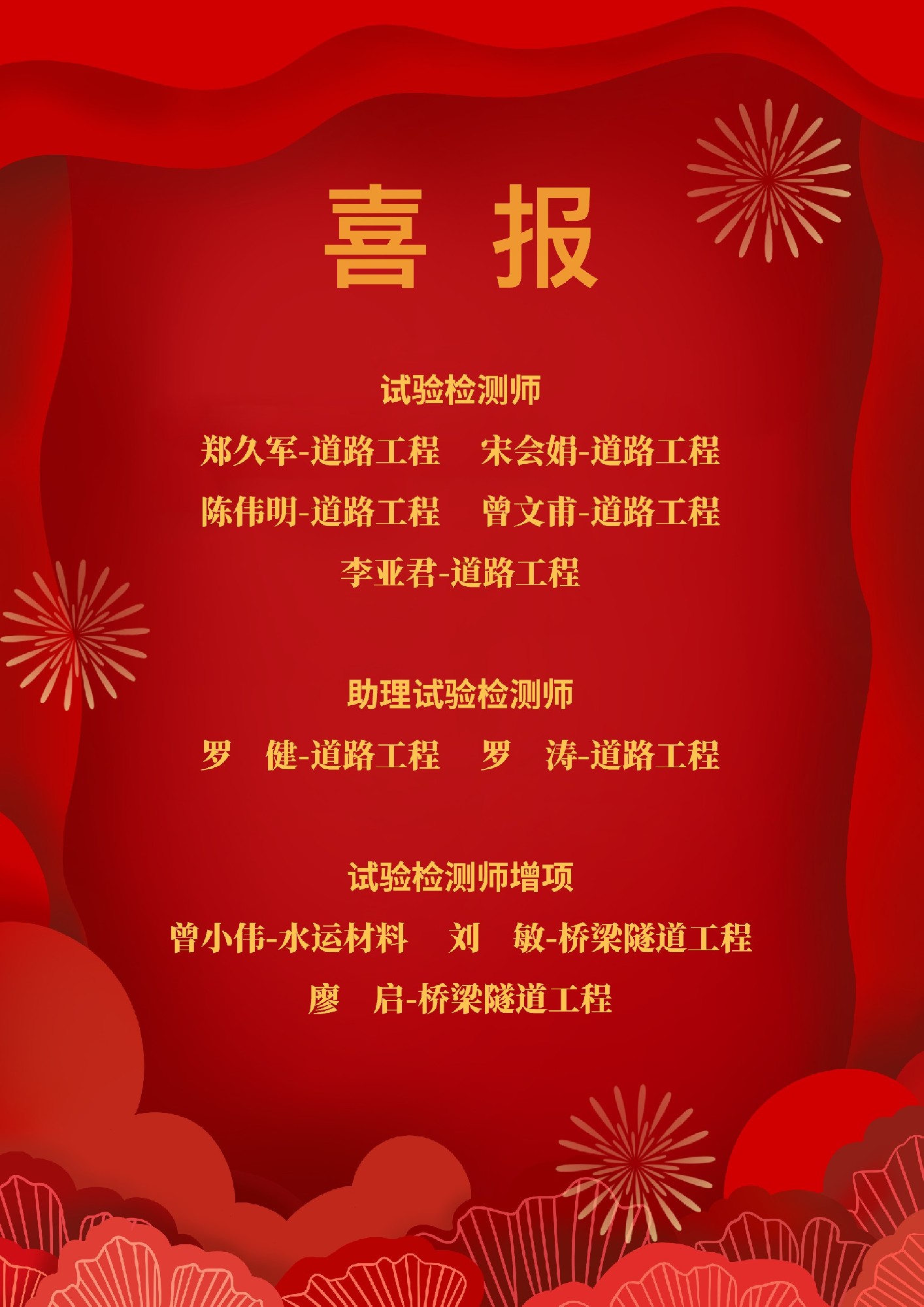 喜报!中南建设集团斩获佳绩,10人通过2024年度全国公路水运试验检测职业资格考试