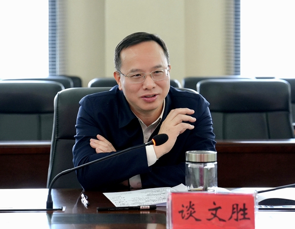 谈文胜对两家单位的到来表示热烈欢迎,对两家单位长期以来信任、支持省地质院表示衷心感谢。他从湖南地质历史辉煌、改革转型贡献、服务大局担当、地质力量雄厚、地质成果斐然等五个方面介绍了省地质院的基本情况、职责职能和工作特色,对三方的合作表示充分肯定,希望三家单位下一步能在机场生态节能打造“零碳”机场、服务机场地下三维,机场建设地质勘探、申报节能科研项目等方面寻求深度合作,携手推动三方工作高质量发展取得新成绩。