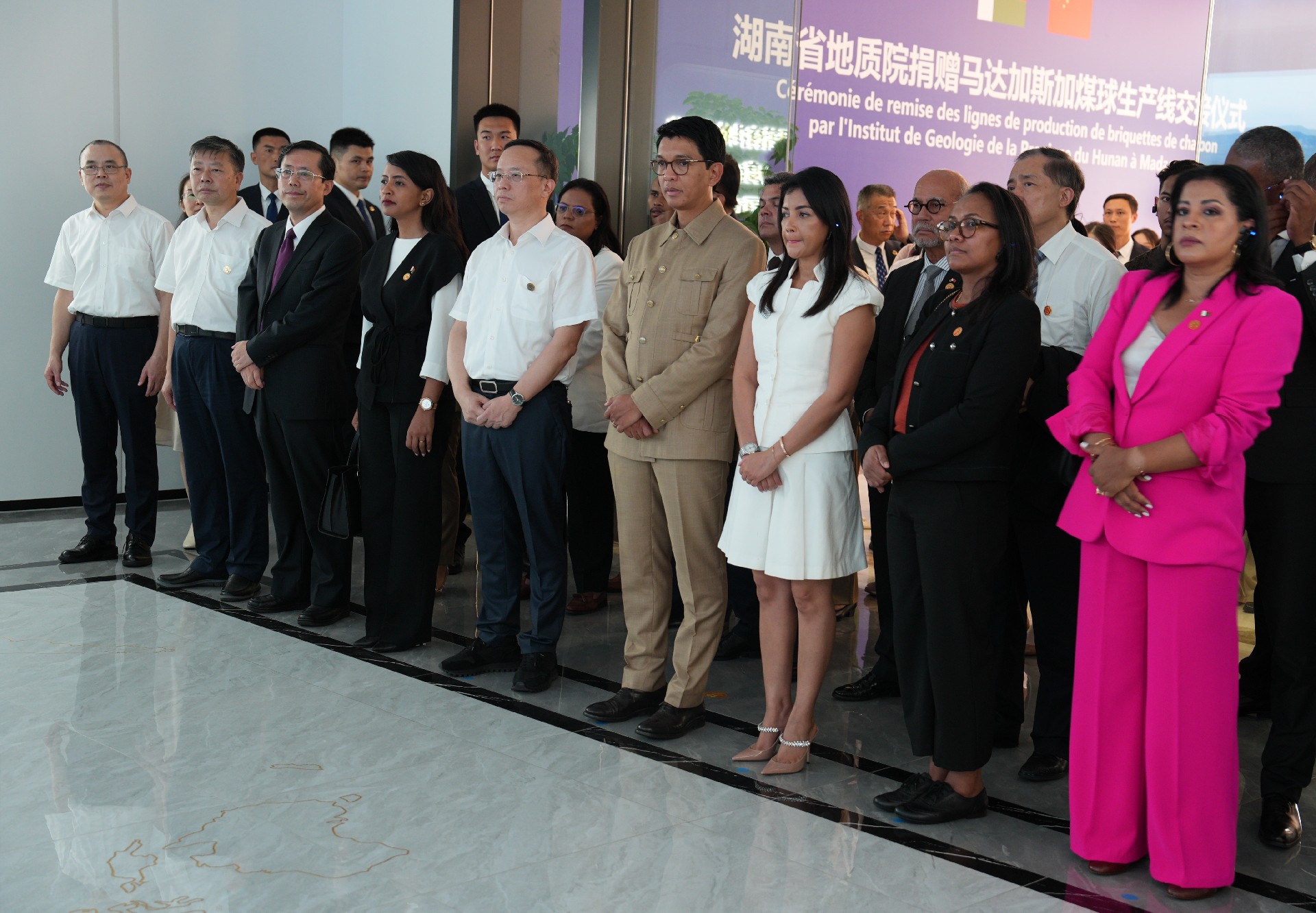 马达加斯加总统拉乔利纳考察湖南省地质院并出席煤球生产线捐赠仪式