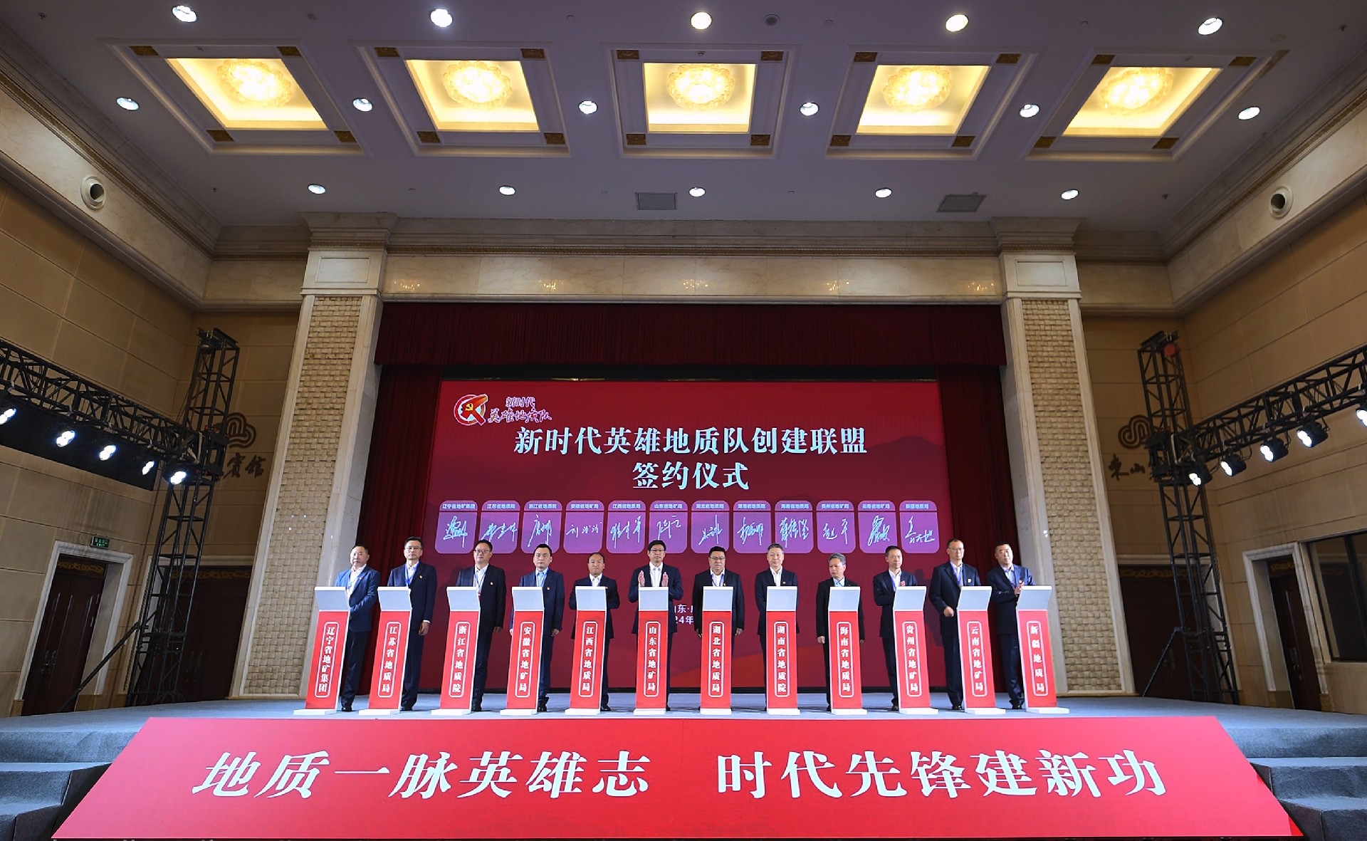 会议现场,12家国家功勋地质队代表共同签署新时代英雄地质队创建联盟战略合作协议。联盟将深入贯彻落实习近平总书记重要回信精神,共同加强党的建设、改革发展、业务拓展、科技创新、人才培养、文化宣传等方面的交流合作,以加强新时代英雄地质队建设为抓手,推动新一轮找矿突破战略行动取得更大成果,共同推动地矿事业高质量发展。