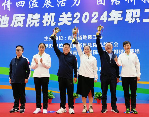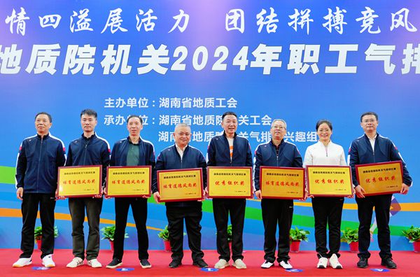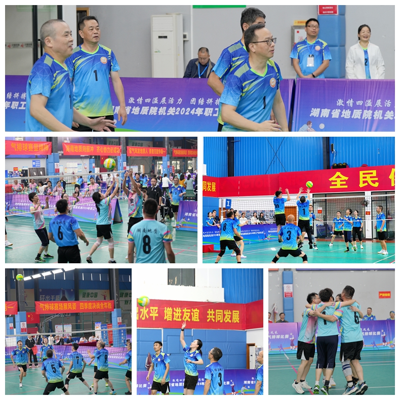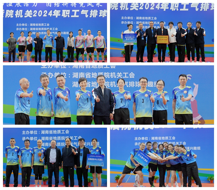 在《勘探队之歌》的优美旋律中,省地质院机关2024年首届职工气排球比赛圆满落下帷幕。作为首届地质文化周的收官活动,本次比赛不仅丰富了职工的精神文化生活,增强了团队的凝聚力和向心力,更展现了湖南地质人积极向上、团结奋进的精神风貌。